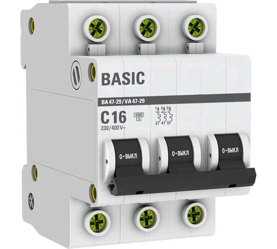 Автомат EKF BA 47-29 3P 16A/C/4.5кА mcb4729-3-16C