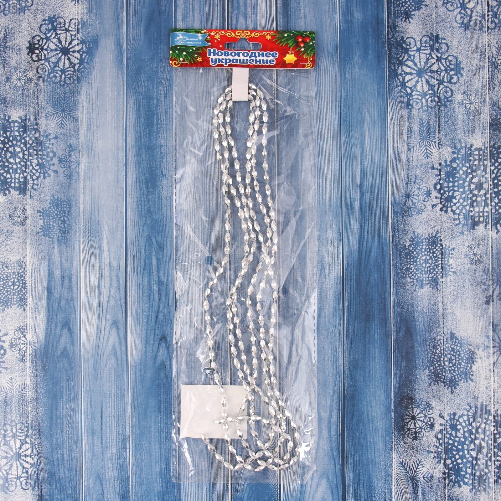 Бусы на ёлку 2м d-3мм Овалы грани серебро 10480527