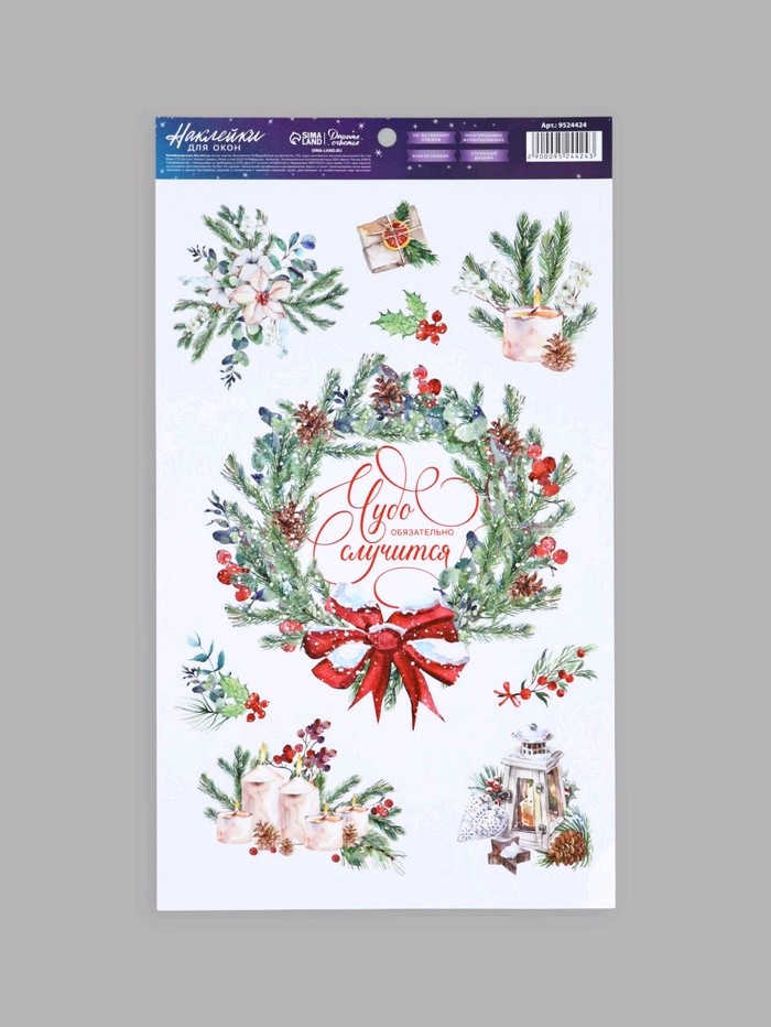 Виниловые неклейки на окна Чудеса, многоразовые 20*34.5см 9524424