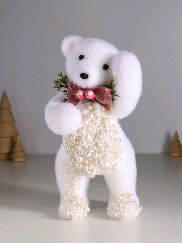 Декор Белый мишка с бантиком в бусинках 20.5*10*9см 10325948 купить в Тогучине, цена | Всё для дома
