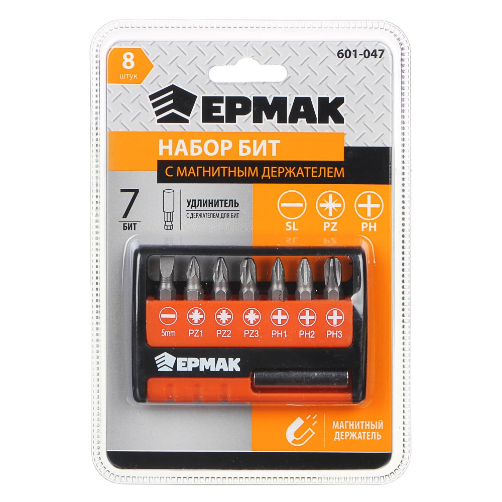 Набор бит ЕРМАК 8шт с магн держ 601-047