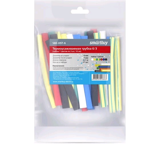 Набор трубок термоусад SMARTBUY 6/3 (7цв по 3шт 10см) SBE-HST-6