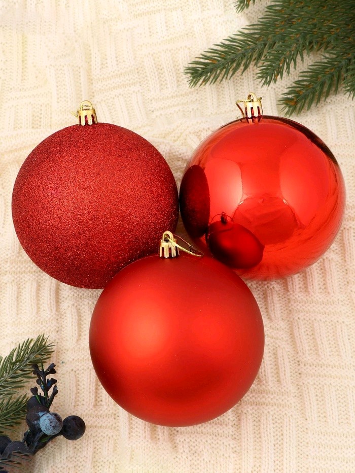 Набор шаров пластик 10см, 3шт Классика красный 4962740