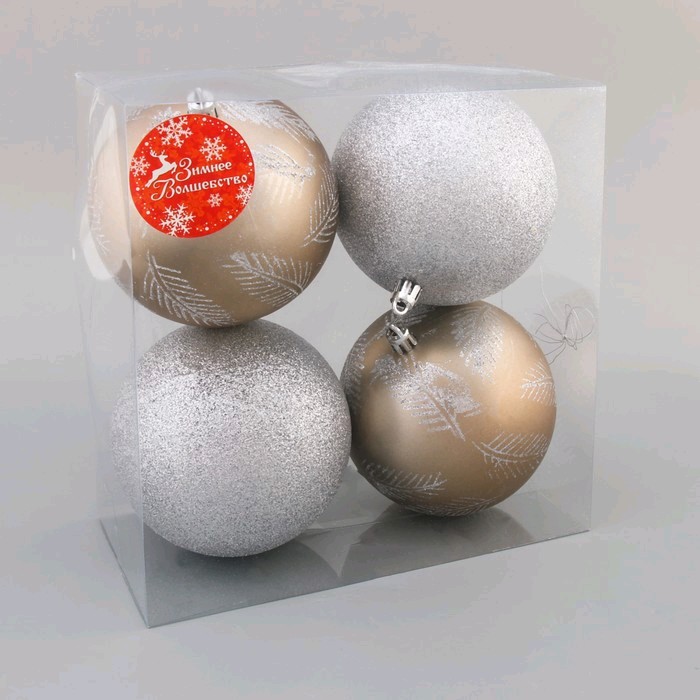 Набор шаров пластик 10см, 4шт, Зимняя листва, серебро золото 4250867 купить в Тогучине, цена | Всё для дома