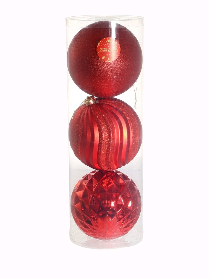 Набор шаров пластик 15см, 3шт, Ассорти, красный 1305731