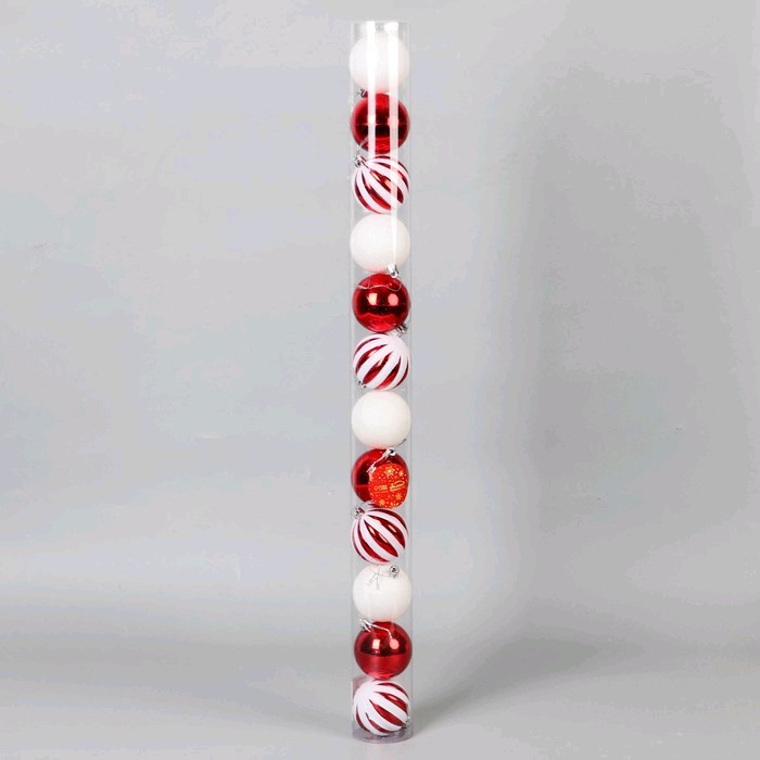 Набор шаров пластик 6см, 12шт Агнет, полосы, красно-белый 9510453