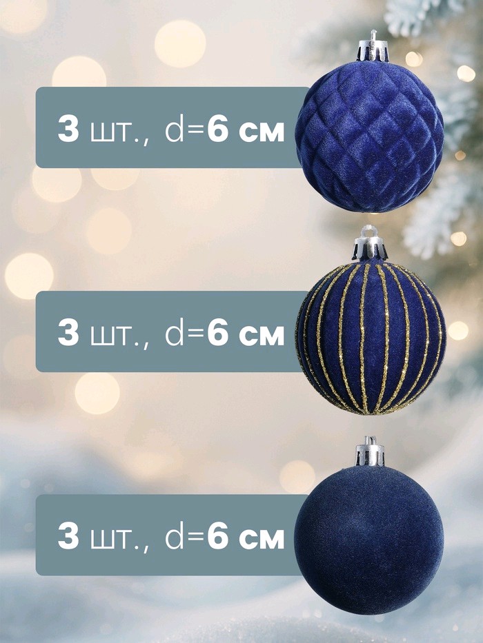 Набор шаров пластик 6см, 9шт Бархат. Карнавал синий 10870256