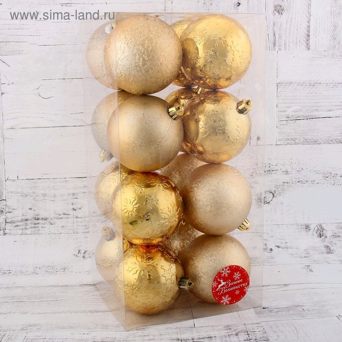 Набор шаров пластик 8см, 16шт Праздничные огоньки-кракелюр 4196377