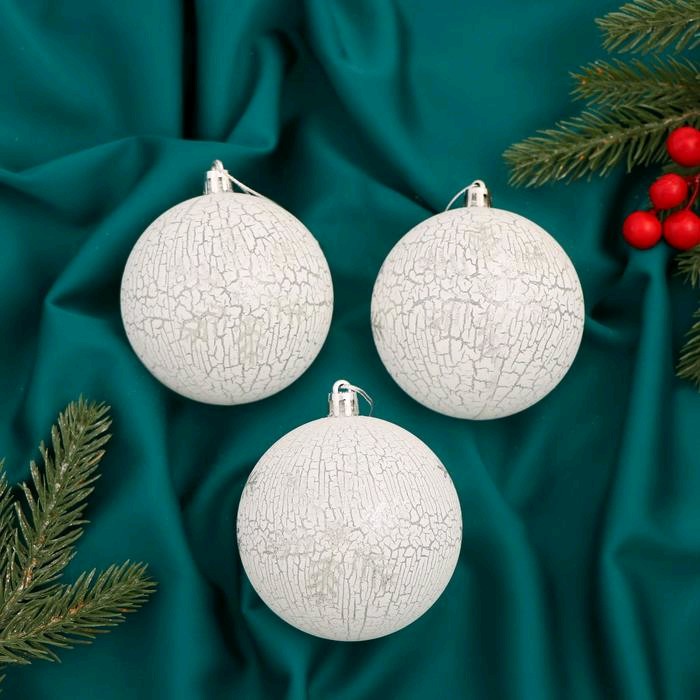 Набор шаров пластик 8см, 3шт Феклиста серебристо-белый 6536883