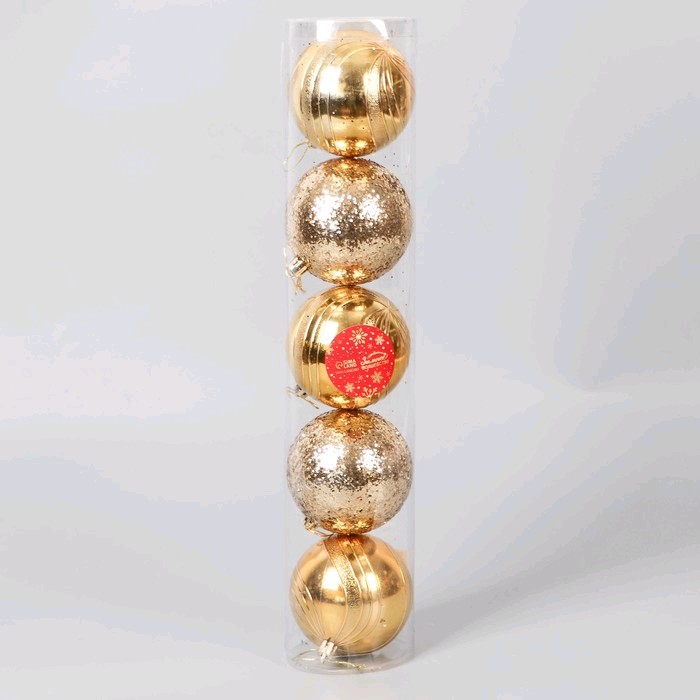 Набор шаров пластик 8см, 5шт Бахор, полосы блеск, золото 9510460