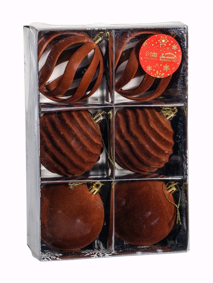 Набор шаров пластик 8см, 6шт Бархат. Грация коричневый 10870264