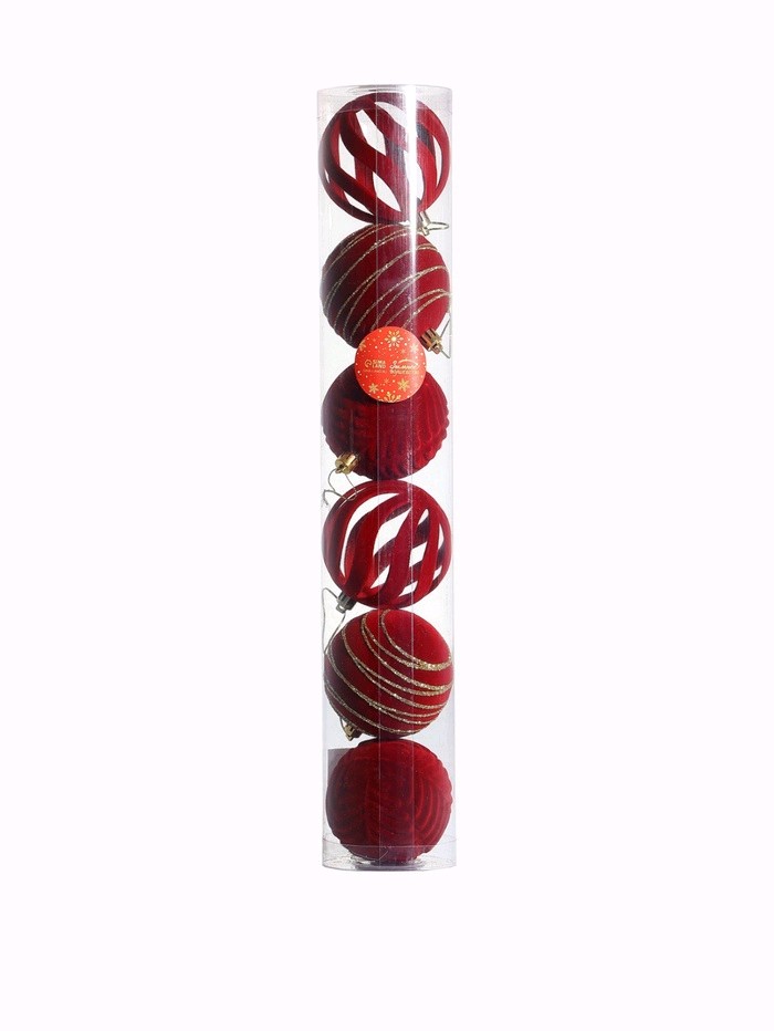 Набор шаров пластик 8см, 6шт Бархат. Карнавал красный 10870261
