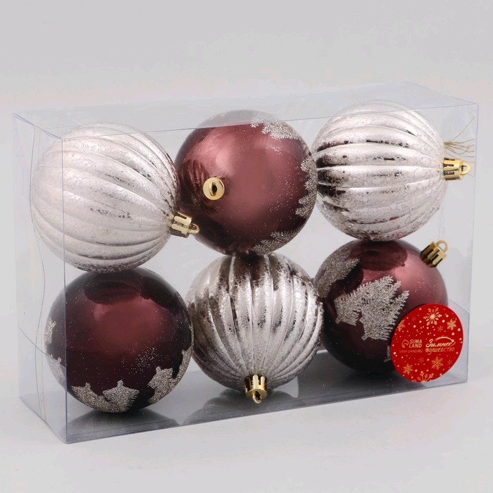Набор шаров пластик 8см, 6шт Сказочные узоры, перья полосы 9510536