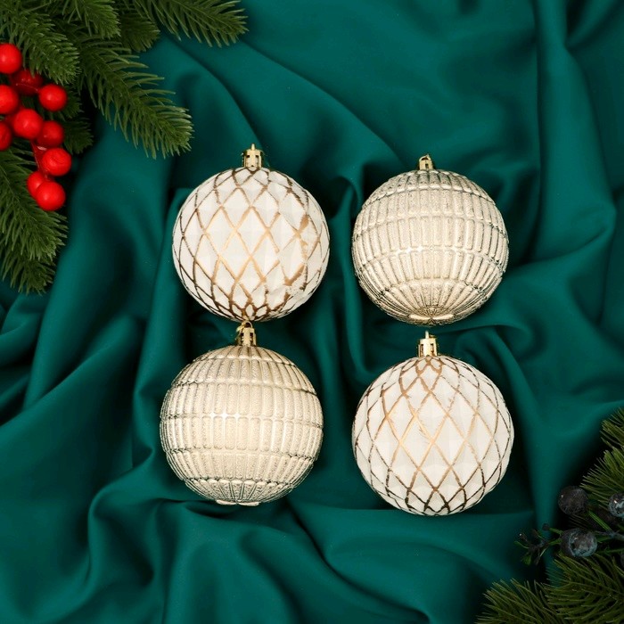 Набор шаров 4шт Авива 8см (сетка) золото 9510253
