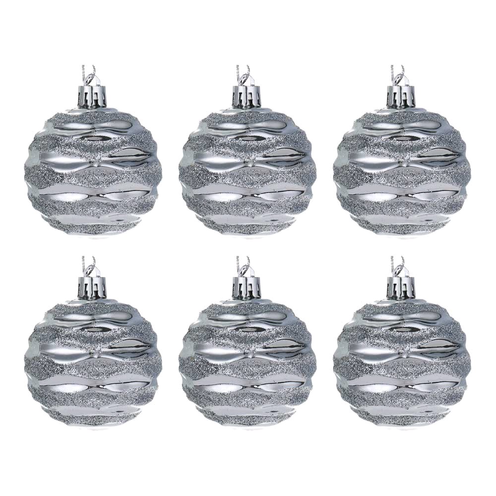 Набор шаров 6см, 6шт, серебро, СНОУ БУМ 26-198