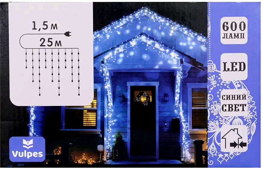 Светодиодная гирлянда Бахрома 25м 600 Led синий IP44 от сети