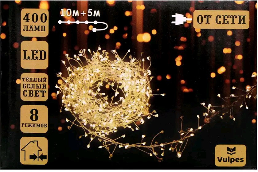 Светодиодная гирлянда Нить Роса 10+5м теплый белый 8реж от сети