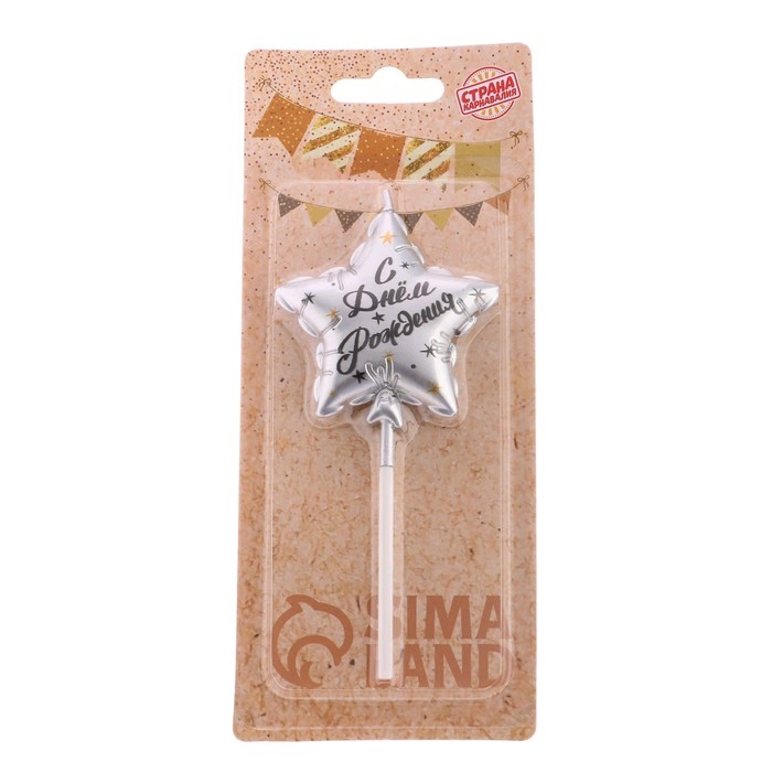 Свеча в торт на шпажке Воздушный шарик. Звезда 5.5см, серебряная 7663055