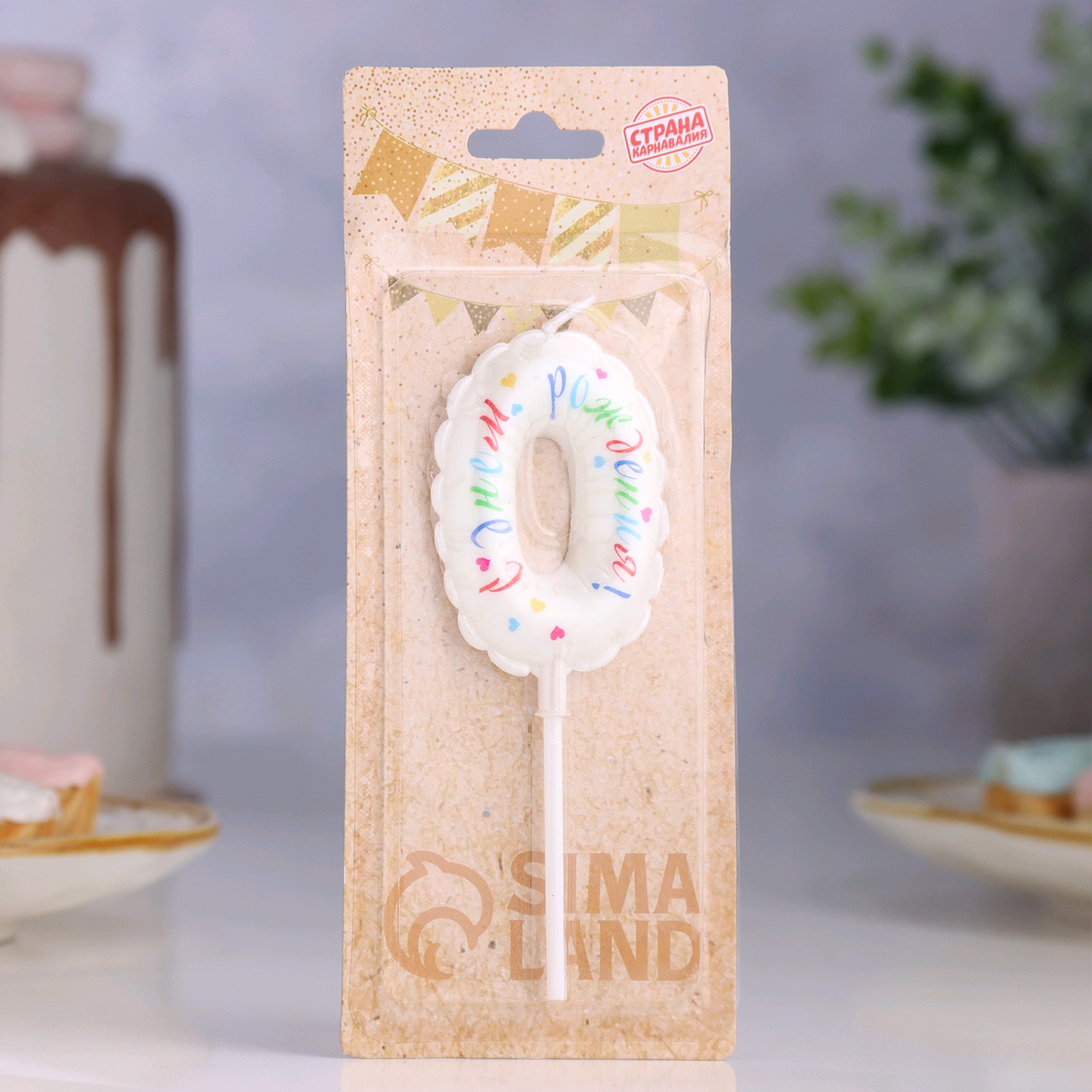 Свеча в торт цифра 0 Воздушная цв белая 9943286