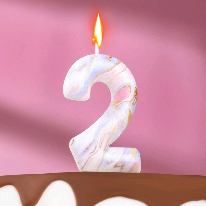 Свеча в торт цифра 2, 5.5см Белый мрамор 6990831