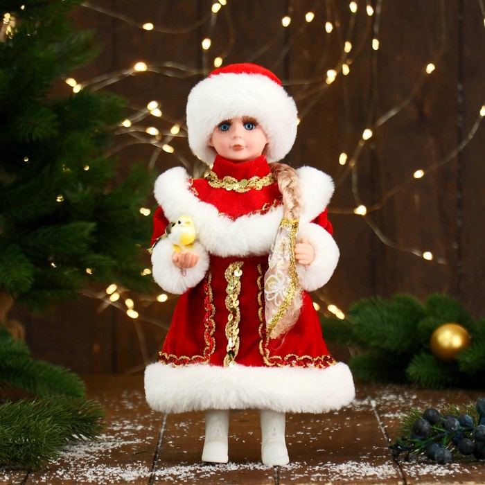Снегурочка В пышной шубке 14*30см красный 6939423