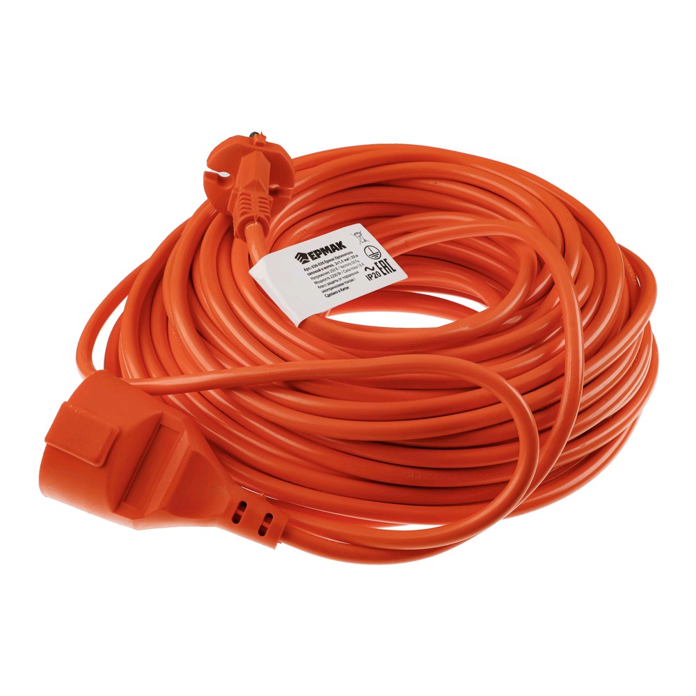 Удлинитель силовой 2*1.0мм, 20м 10А или 2.2кВт ЕРМАК 636-035