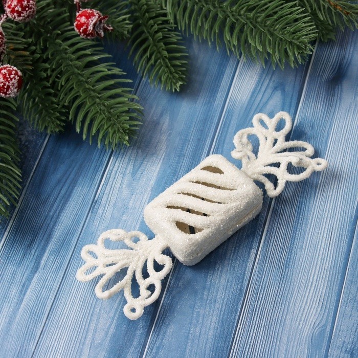 Украшение ёлочное Конфетка блеск 12.5*3.5см, белый 10499904