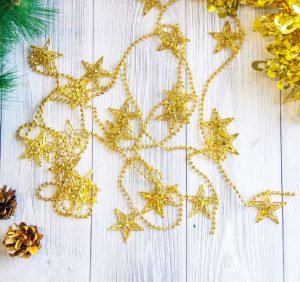 Бусы на елку 2.7м Звезды д-40мм золото 2371399